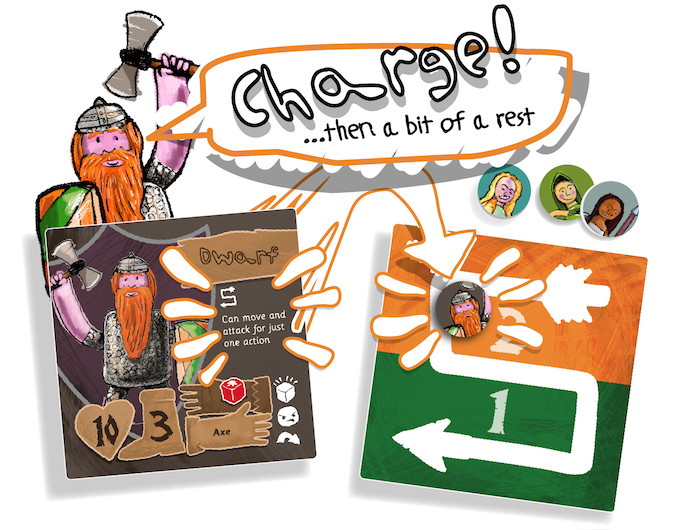 Each hero has a special ability that is activated by putting a token on the countdown track. At the end of each round the tokens will move down one space on the track. You're unable to use your special ability again until your token has moved off the bottom of the track and has come back to you, so you need to think very carefully about when is the best time to use it.