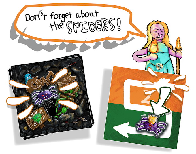 Each time you complete a round without having explored further into the dungeon, the "threat token" moves down one space on the countdown track. If it ever moves off the bottom of the track then a swarm of spiders appear in the dungeon and start attacking the heroes. The ever-present threat of being swarmed by spiders really moves the action along!