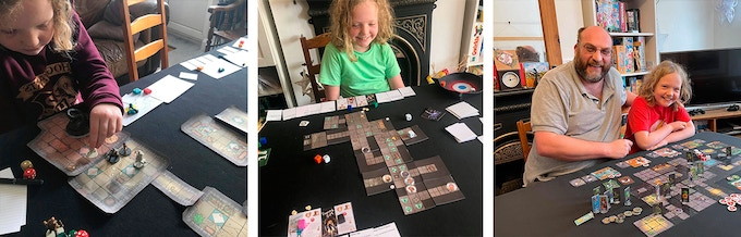 While it started as a homemade project, CoraQuest has had massive amounts of support from a whole legion of playtesters. Although its roots are still true to the game Cora and I made together on our kitchen table, our playtesters have helped us develop CoraQuest from its rough and ready origins to a smooth-running, polished, and above all very fun game.