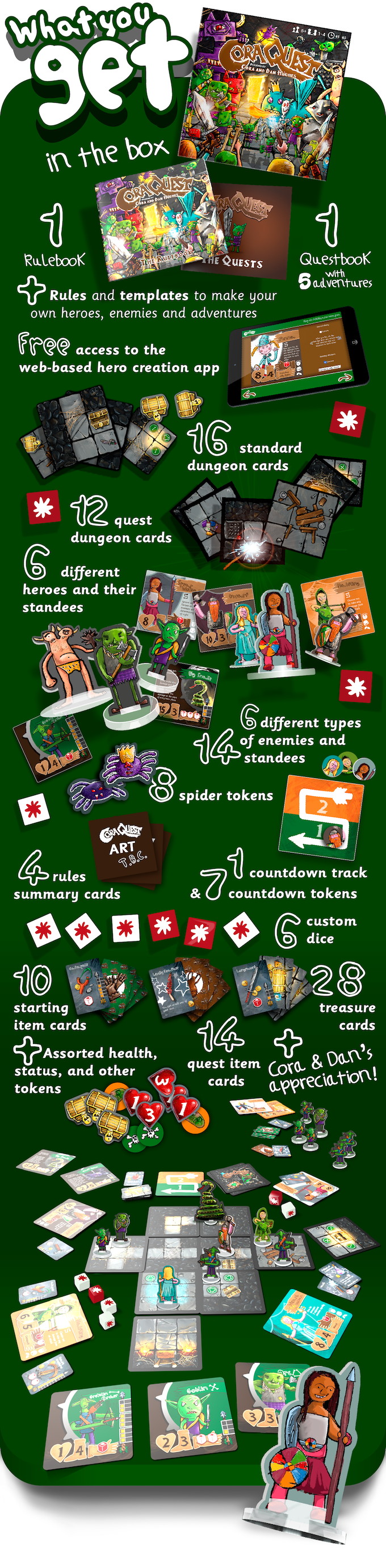There's enough content in the CoraQuest box to keep you going for a very very long time. However, Cora and I had so much fun with the creative process of making the game that we wanted to provide the same exciting experience to others too.