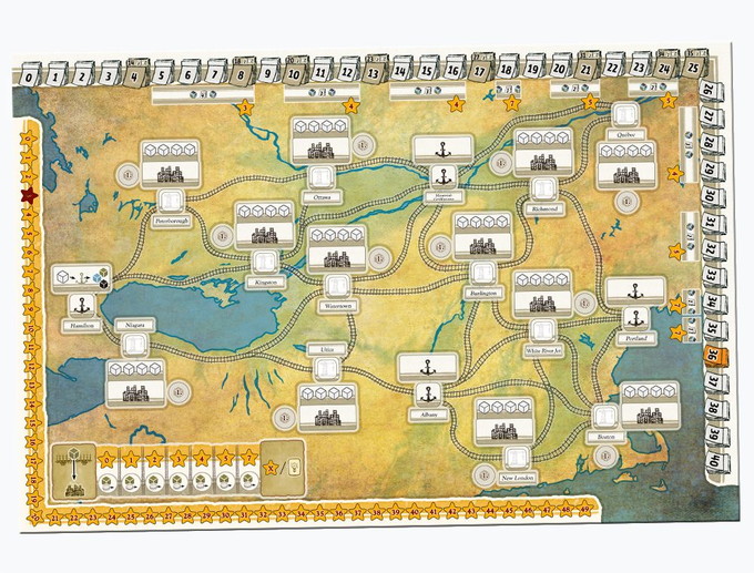 In The Grand Trunk Journey, players represent managers of various railway companies, delivering goods to four ports and twelve cities in Eastern Canada and the U.S.