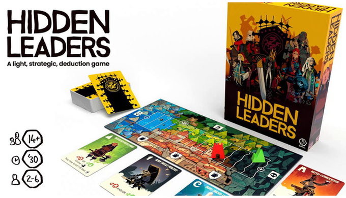 Hidden Leaders is a quick, light strategy card game with direct player interaction. It combines tableau building and deduction elements with its unique winning mechanism. This is a game of great tension with no-down time, that’s fast to learn. Its distinctive artwork and character names will make you smile.