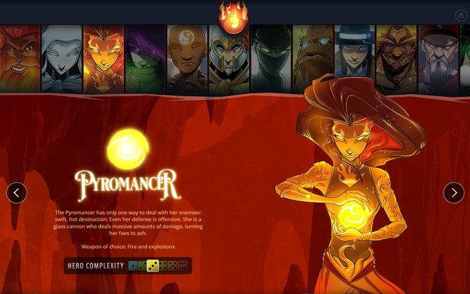 The Pyromancer has only one way to deal with her enemies: swift, hot destruction. Even her defense is offensive. She is a glass cannon who deals massive amounts of damage, turning her foes to ash.