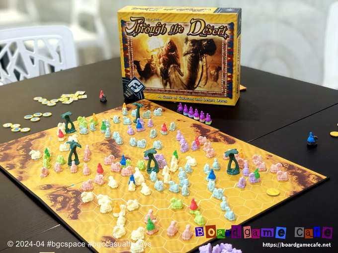 In Through the Desert, two to five players each control a tribe of nomads vying for control of the desert. By establishing caravans and taking over oases, the players gain points as their tribes increase in power.