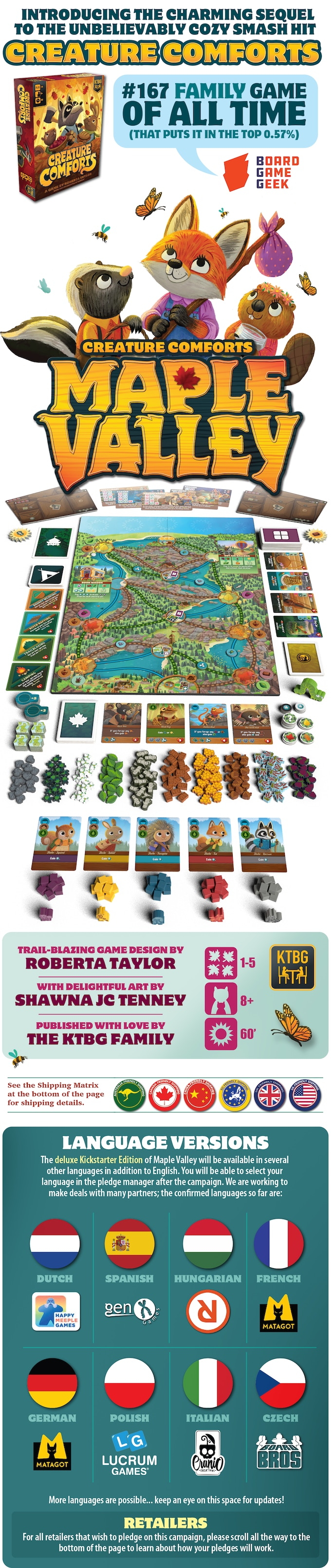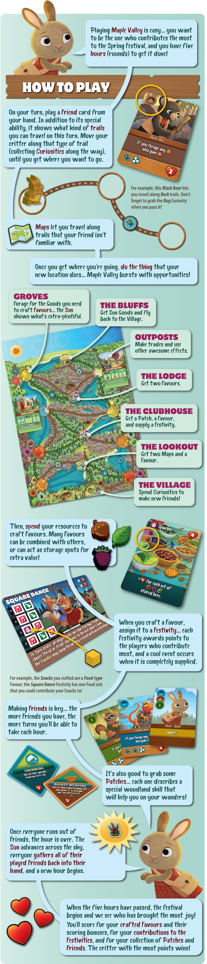 Set in the delightful world of Creature ComfortsMaple Valley is a game of traveling trails, finding friends, and celebrating new beginnings for 1-5 critters.