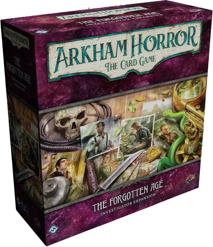 The Forgotten Age Investigator Expansion features five investigators for Arkham Horror: The Card Game and contains all of the player cards from the original The Forgotten Age cycle of content. Guide your party to safety as the expedition leader, Leo Anderson; discover untouched wilds as the explorer, Ursula Downs; make a quick escape as the bootlegger, Finn Edwards; call forth miracles as the priest, Father Mateo; and seek strength in a dark pact as the haunted, Calvin Wright.