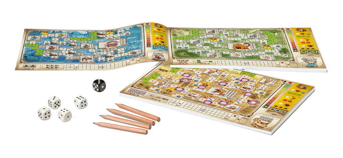 Gather your courage, pack your sword, and roll the dice as you journey through the realm in search of treasure and glory. In the roll-and-write game Dungeons, Dice, & Danger, you explore deep, dark dungeons filled with treasure — and infested with monsters! Do you have what it takes to be a hero of legend?