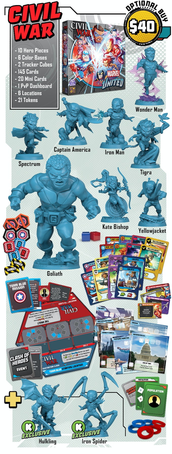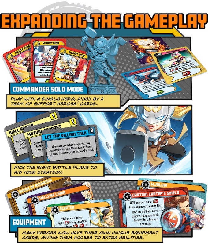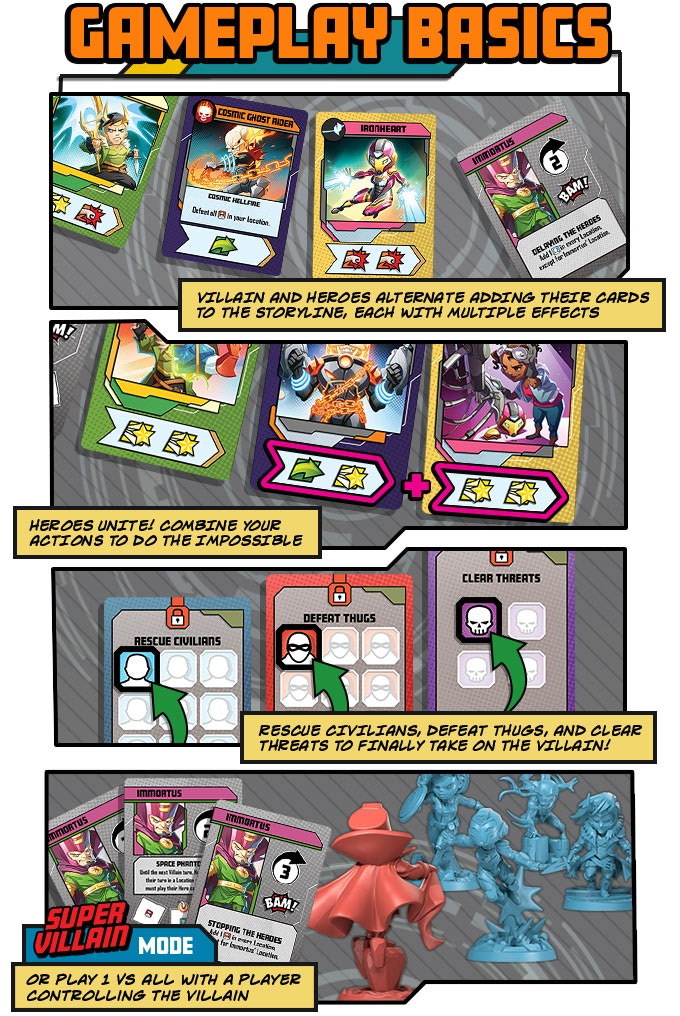 Simple rules, deep strategy, easy setup, quick playtime, variable difficulty, eye-catching artwork, and amazing character pieces. All united to bring you the most fun Marvel play experience!