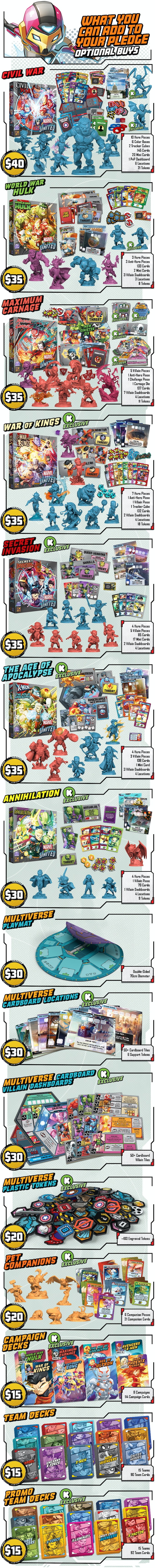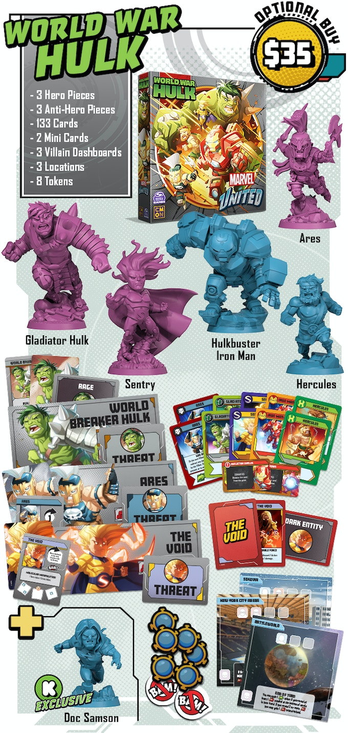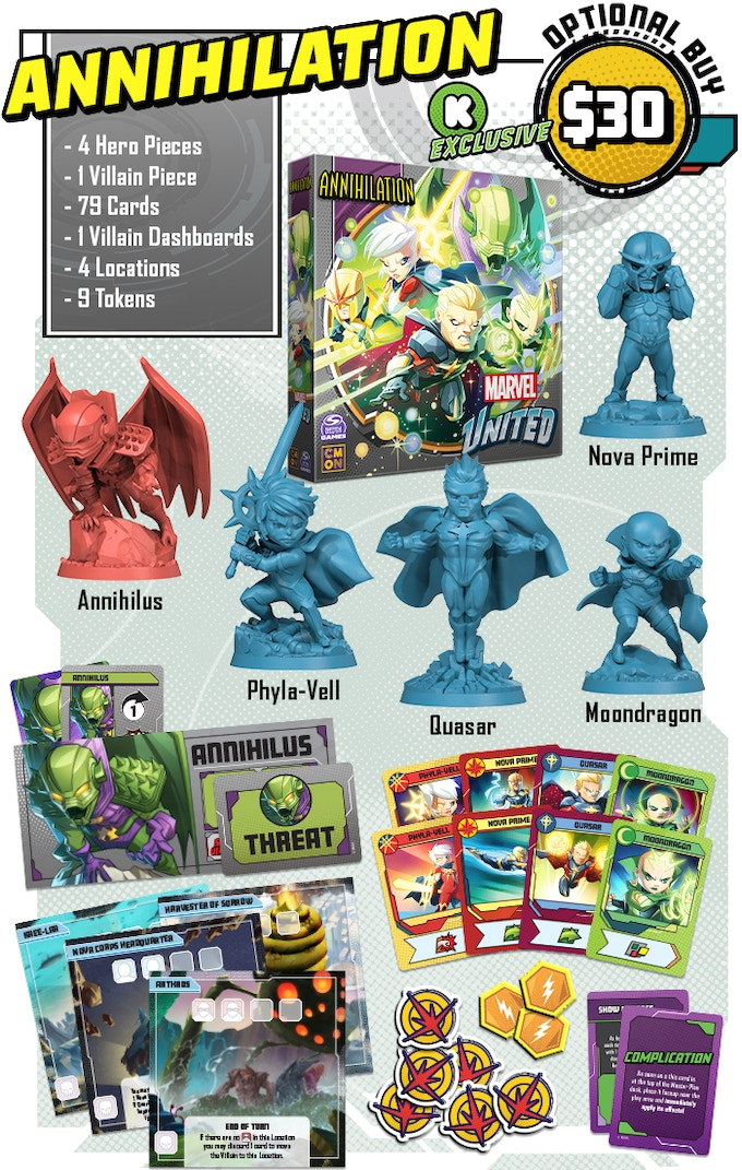 Marvel United is opening the Multiverse wide open and bringing it into this fast-paced cooperative game. Build your team of Heroes from all realities and join forces to thwart the master plan of the most powerful Villains across all timelines. With your special equipment at your side, even the biggest obstacle can be toppled.