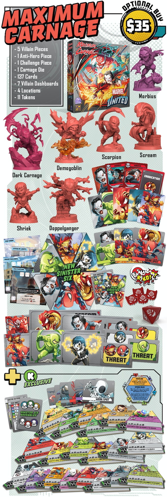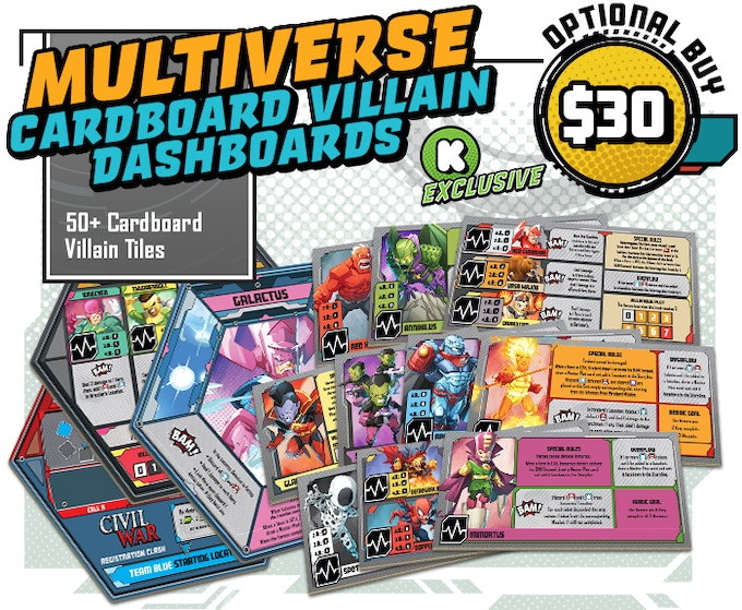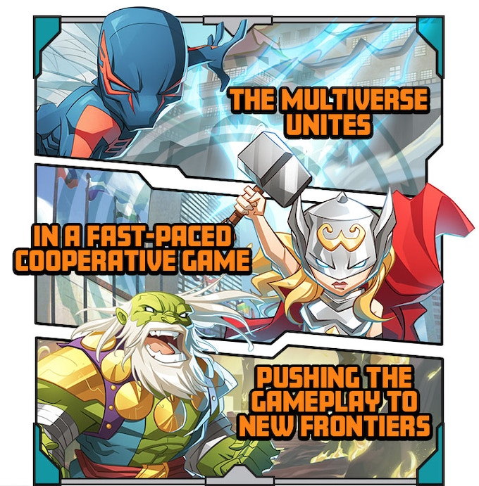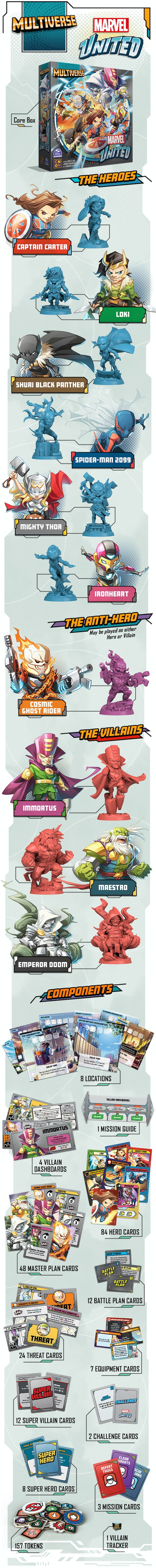 In Marvel United: Multiverse, you take the role of iconic Marvel Heroes cooperating to stop the master plan of a powerful Villain controlled by the game. Each Villain unveils their unique master plan, with cards that trigger different effects, and threats that pose challenges across the locations. Heroes must choose carefully the cards to play from their unique decks, that not only offer different actions and superpowers to use, but also combine with the actions of other Heroes to do the impossible. Build your storyline, unite your powers, save the day!