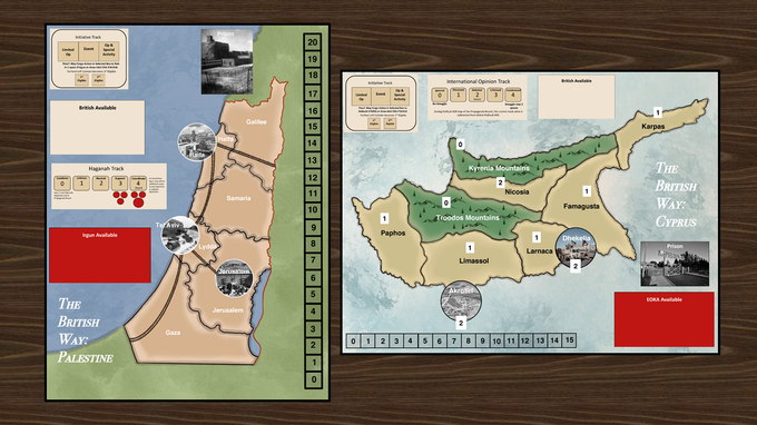 The British Emergency in Cyprus (1955-1959) was conducted under the shadow of international opinion and increasing pressure from the international community to respect human rights. As the British player tries to balance locking down the population while managing international pressure, the EOKA player will launch sabotage attacks in towns across the island while building their organization in the mountains. The British Way: Cyprus is probably the simplest of the four games in the pack, although the new counter-terrorism mechanics it introduces are significantly different from anything that has appeared in previous COIN volumes.