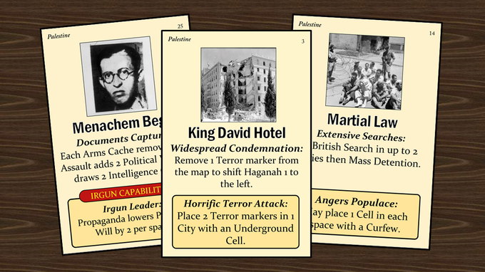 Likewise, during the Palestine campaign (1945-1947), the British player will be faced with the Jewish resistance groups Irgun and Lehi launching sabotage and terrorist attacks across Mandatory Palestine, while risking criticism from the US and other international observers if their response is too heavy-handed. The British Way: Palestine further develops the new counter-terrorism mechanics introduced in Cyprus, while also including unique game systems to model the British use of the blunt tool of Mass Detention, the shifting cooperation of Haganah (the Jewish Agency’s armed wing), and high-profile terrorist attacks such as the King David Hotel bombing.