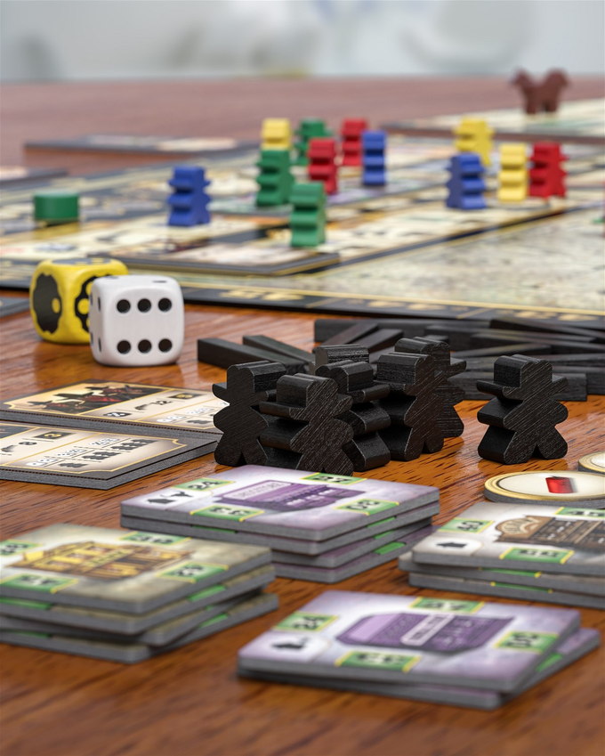 Carson City: Horses & Heroes, the second expansion, lets players visit the rodeo to claim additional victory points and use horses to unlock special actions. Three new characters are also added to the game.