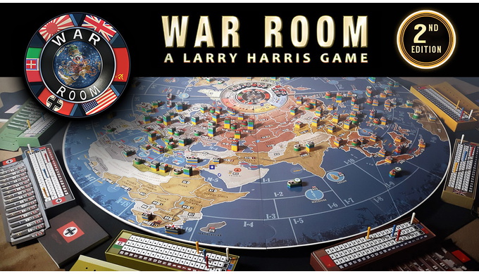 Larry Harris presents War Room, a deluxe global World War II game for 2-6 players. You have been entrusted with the Mantle of Command for your nation. Collaborate with allies to coordinate maneuvers before resolving your secret, simultaneous orders for movement and production. Assign battle stances for each unit type wisely during conflicts on the land, at sea and air. Maintain a tight grip on your territories and guard your convoys to control the varied resources required to expand your army. Attack your enemies where they least expect and crush their national morale. Strive onward to capture the enemy capitals and secure victory!