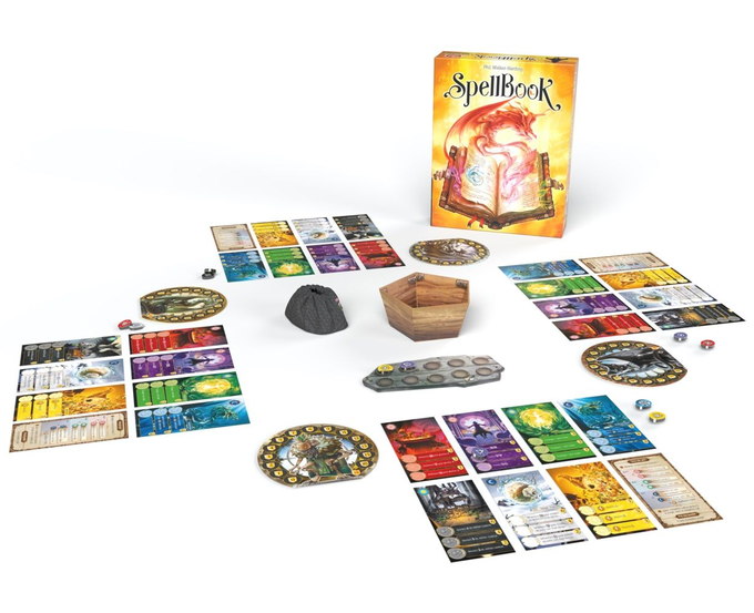 In SpellBook, each player, accompanied by a familiar, possesses a grimoire and collects Materia to master spells and feed their familiar. The game provides pre-drawn spell sets for use in the early rounds, but soon players start drawing spells randomly or create their own spell combinations that are common to all players. Each spell combination gives an effect that lasts the rest of the game, and the more ingenious the combination, the more powerful the effect. As the rounds progress, the game becomes a different experience every time, with more than 2,100 spell combinations being possible.