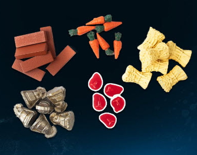 A set of 30 hand-painted 3D resources made from resin and wood.