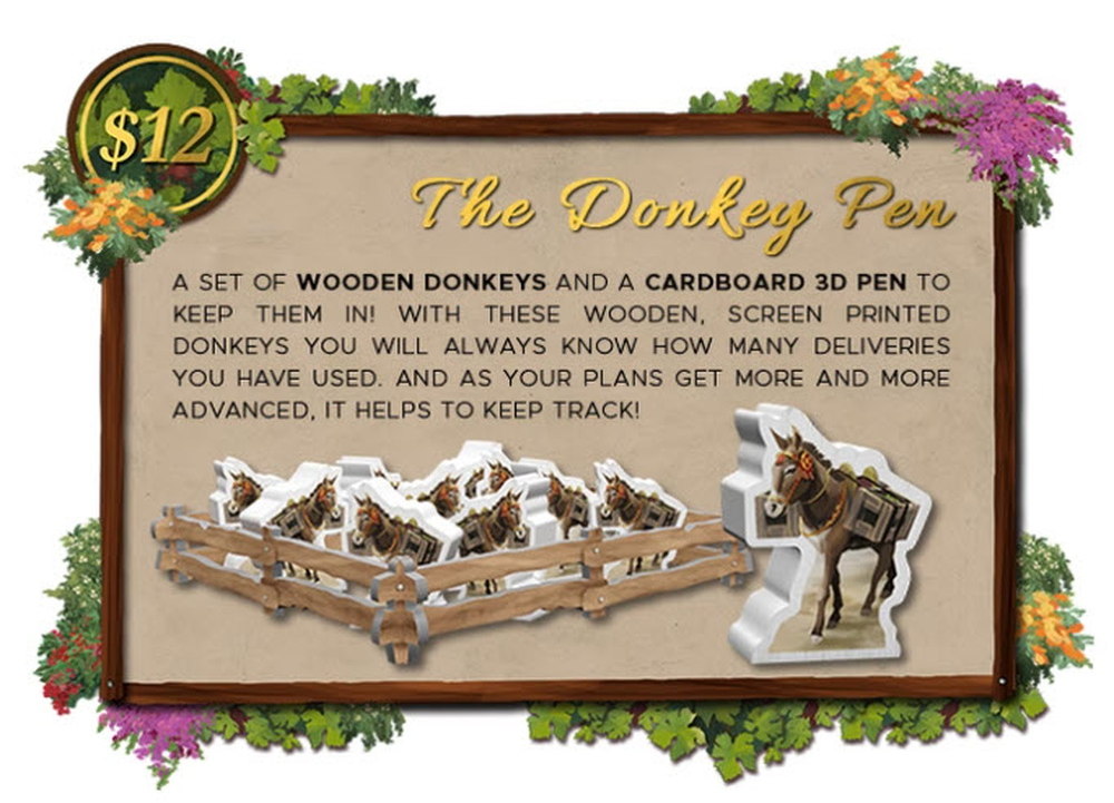 A set of 20 wooden donkeys and a 4-sided cardboard 3D pen to keep them in! With these wooden, screen printed donkeys you will always know how many deliveries you have used, and as your plans get more and more advanced, it helps to keep track!