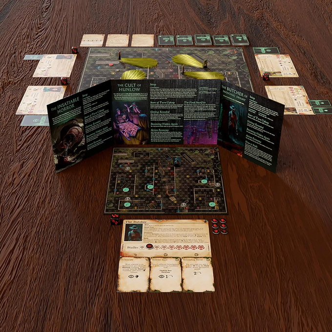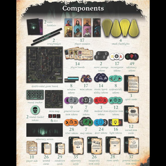 The Stifling Dark is a one-vs-many hidden-movement horror board game with an innovative line-of-sight mechanic for 2-5 players. One player takes the role of the adversary, whose goal is to prevent the other players (the investigators) from escaping through a variety of unique actions. As an investigator, your only goals are to survive and escape.