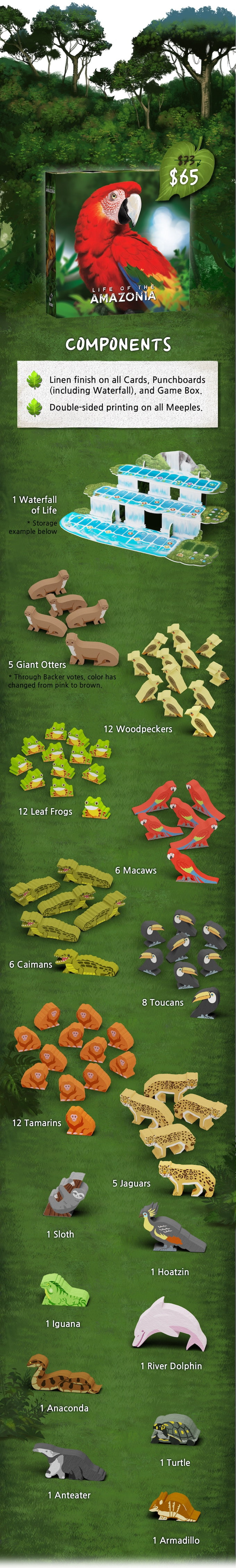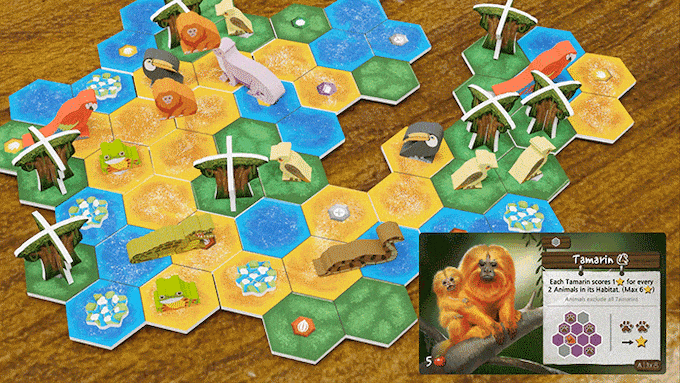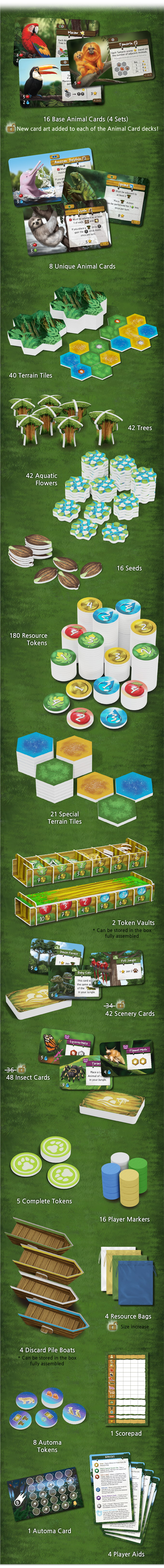 Be prepared to run your very own conservation organization to make the jungles of the Amazon flourish. Create your very own high-scoring strategy from a variety of action options such as placing animals and plants, restoring an area, purchasing cards, and more!