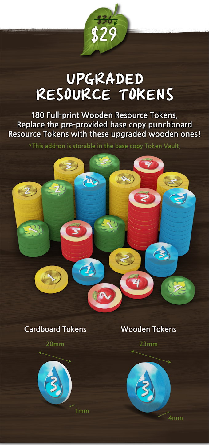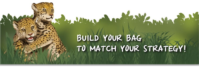 Players will use 4 types of resources with different abilities to perform various actions in order to restore the Jungle. Buy higher-value tokens according to your strategy and strengthen your bag in the desired direction to perform those actions more efficiently!