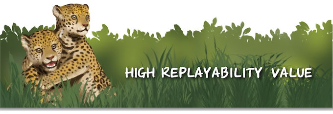 The 60,000 different ways to set up the Basic Animals and a variety of Unique Animals provides a different kind of fun for each game. At the end of the game, each player’s Jungle will vary in shape and size, all taking on a different form.