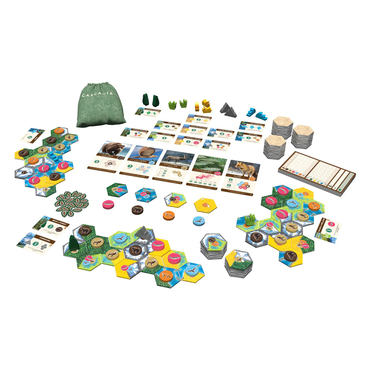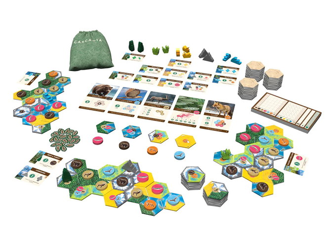 In Cascadia: Landmarks expansion, players create sprawling habitats and place beautiful natural landmarks within them. Landmarks give each environment its own look and feel, while also providing dynamic endgame scoring bonuses!