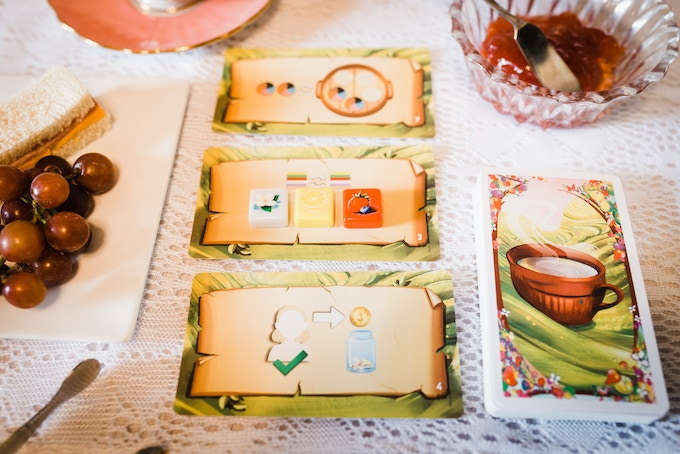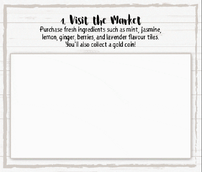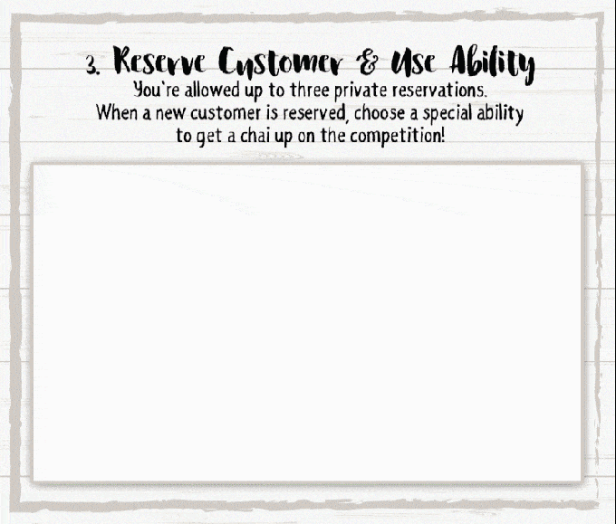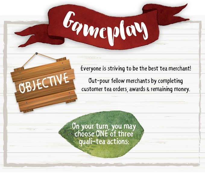 As a tea merchant, each turn you will do one of the following: Visit the Market, Select Additives, Reserve a Customer.