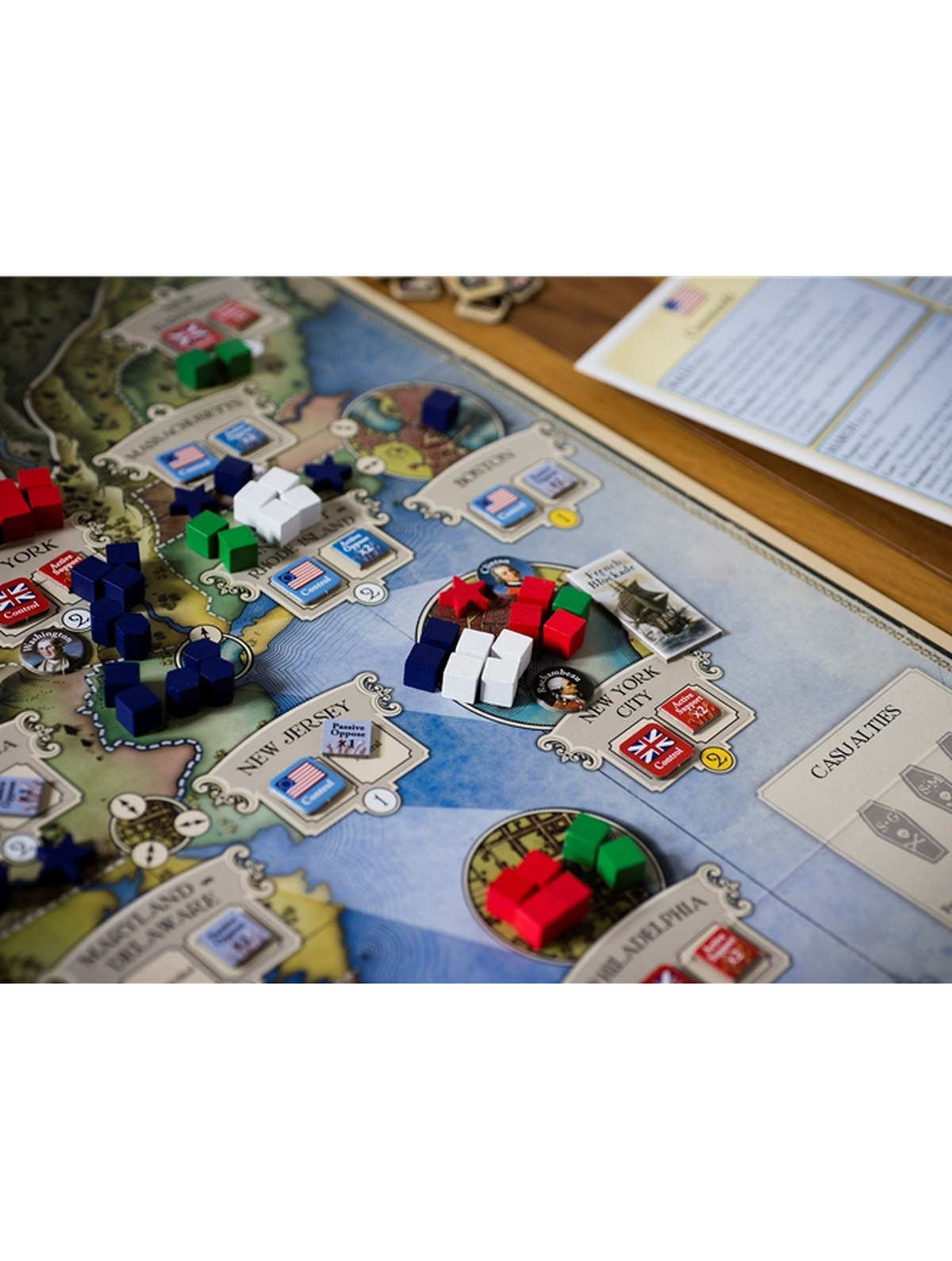 Building off the good works of COIN Series Creator Volko Ruhnke and Series Designers Jeff Grossman, Brian Train, Mark Herman, and Andrew Ruhnke Designer Harold Buchanan applies his knowledge of the American Revolutionary period to take a new look at the struggle that built a nation. COIN Series Developer Mike Bertucelli continues his work on this project and Volko Ruhnke is an active advisor.