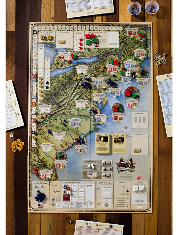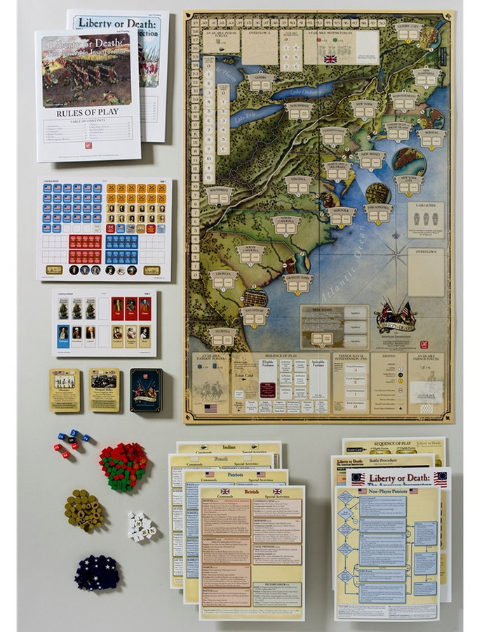 Liberty or Death: The American Insurrection features the same card-assisted counterinsurgency game system as GMT's Andean Abyss, Cuba Libre, A Distant Plain, Fire in the Lake and Gallic War with a set of twists that take the COIN Series to the 18th Century, including: