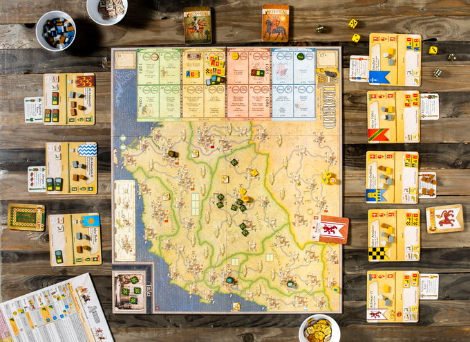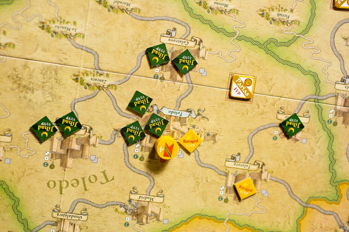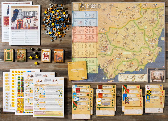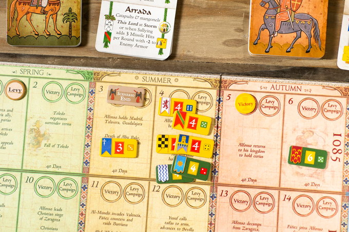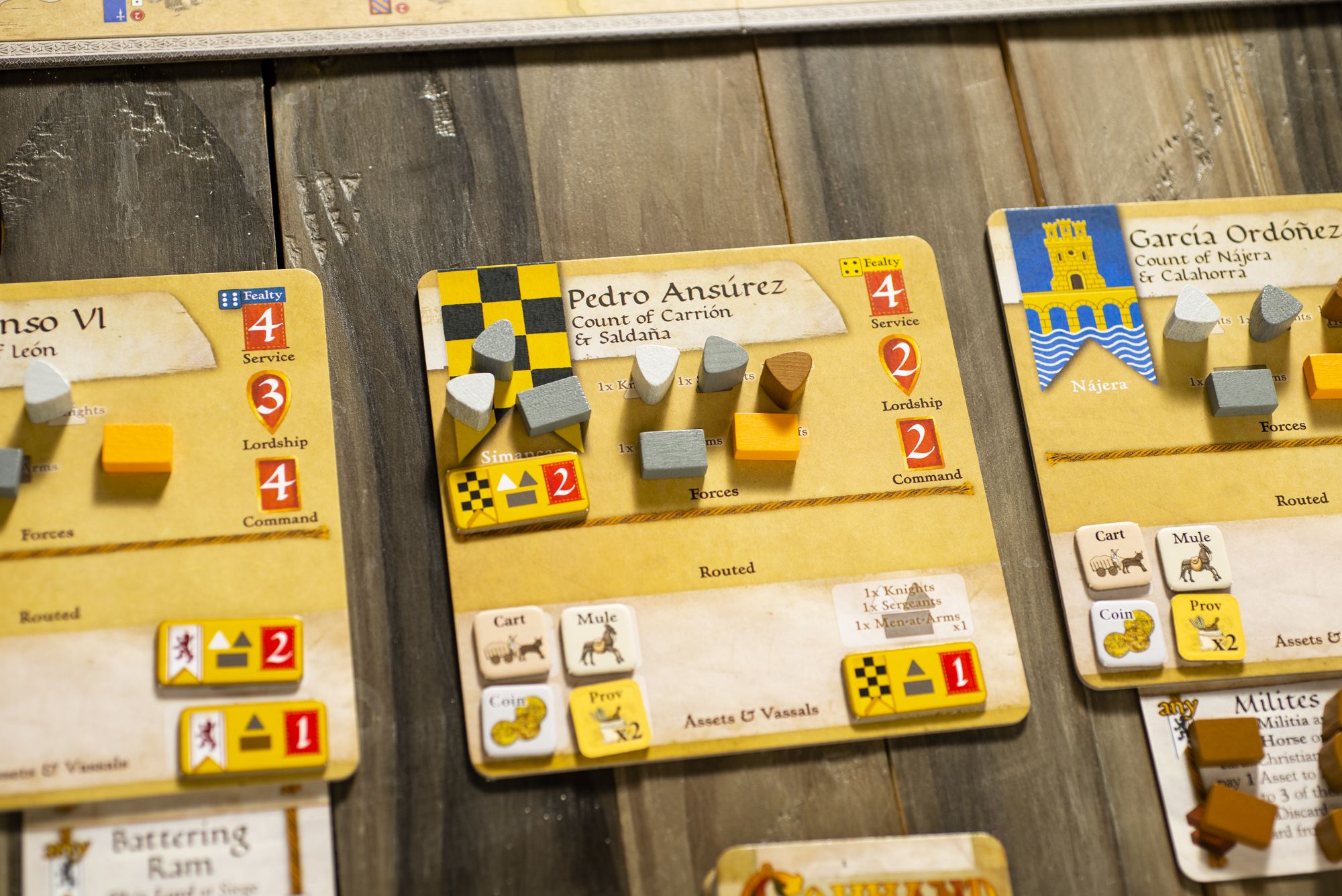 Almoravid is solitaire friendly, or players can use optional screens to hide what the two players' lords levy.