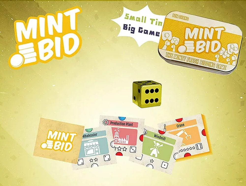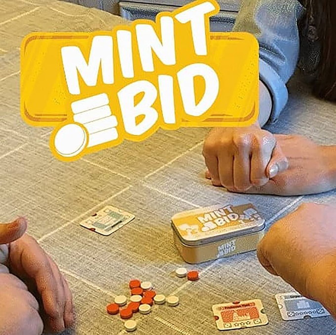 Mint Bid is a refreshingly light auction game for 1 to 6 players with easy-to-learn rules, lightning-fast setup, and exciting social gameplay, all in 30 minutes!