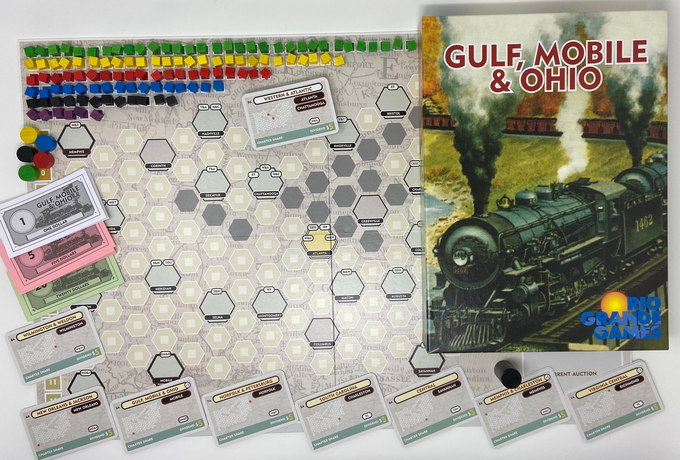 GM&O takes place in the early days of railroads in the southern United States. The game is named after one of the iconic railroad companies that were formed out of the remnants of these small companies. The players represent the founders of these early railroads. During the game, players compete with other players to found companies, expand their lines to new cities, connect with complementary lines, and generate dividends for their shareholders.