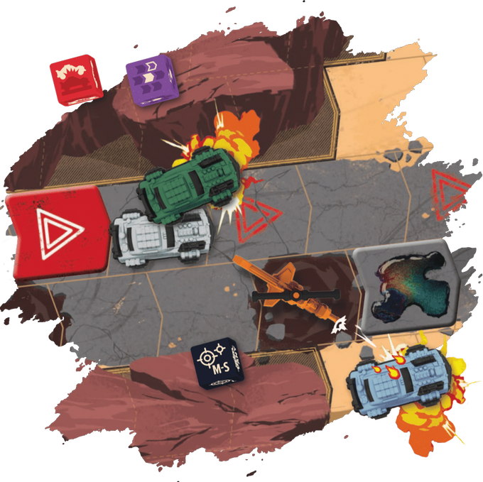 Take control of your crew and put the pedal to the metal, pushing your cars faster and faster. If you’ve got your opponent in your sights, fire your guns or try to slam them into the rocks. All the while avoiding deadly obstacles and your opponents’ own tricky tactics.