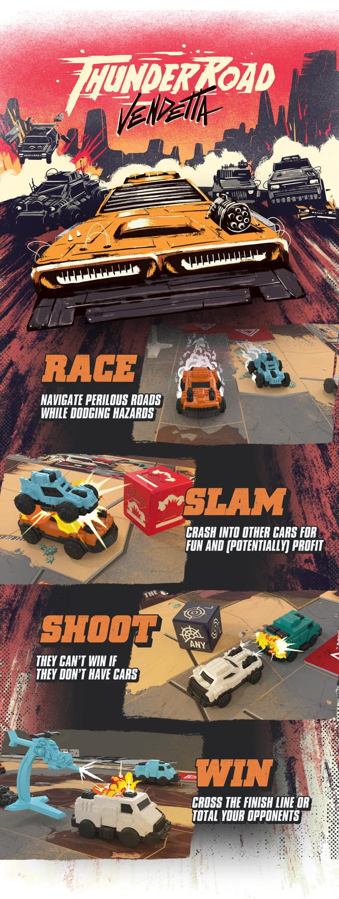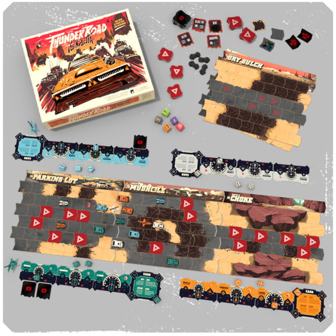 Detailed vehicle minis, chunky dice, and the game’s signature “infinite” road board make this a racing game like no other.