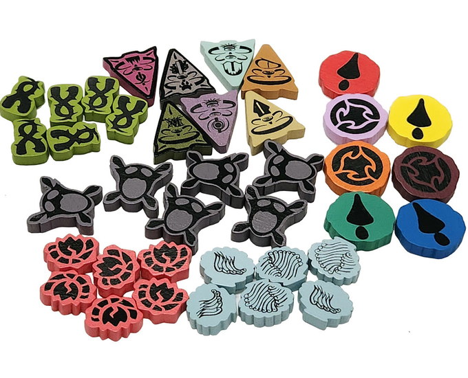 A set of 201 custom wooden silkscreened tokens including Incarna, Deeps, Vitality, Quake, Element, and even some extra Stife, Badlands, 1-Energy, and Fear tokens! This set of tokens comes packaged in a full-color box roughly the size of the Branch & Claw expansion.