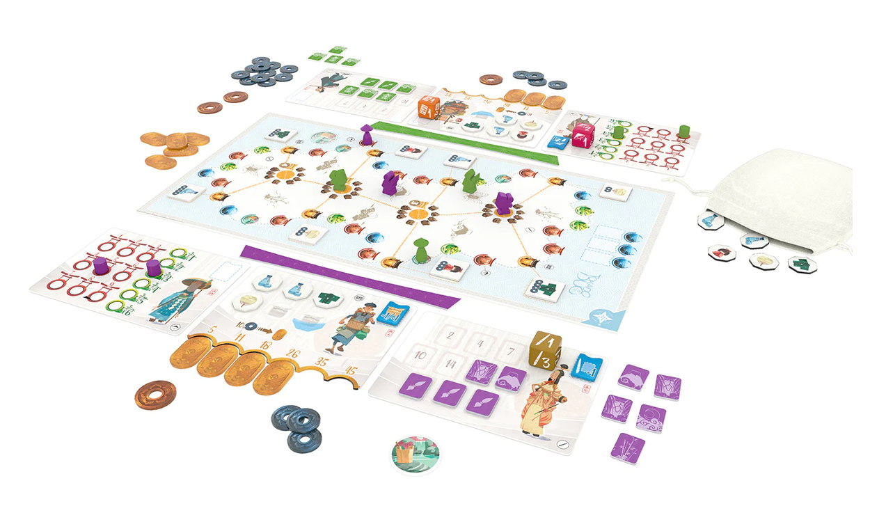 In Tokaido Duo, 2 players pace the fourth biggest isle of the Japanese archipelago. You will discover its many sceneries through the eyes of three different characters, and will thus experience a threefold spiritual journey.