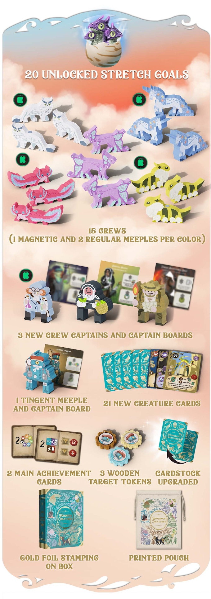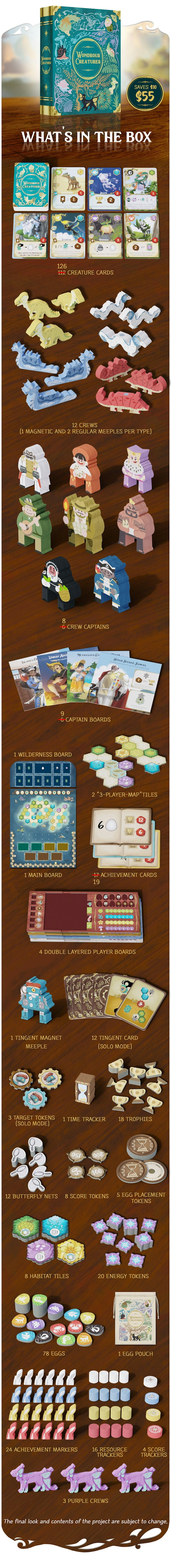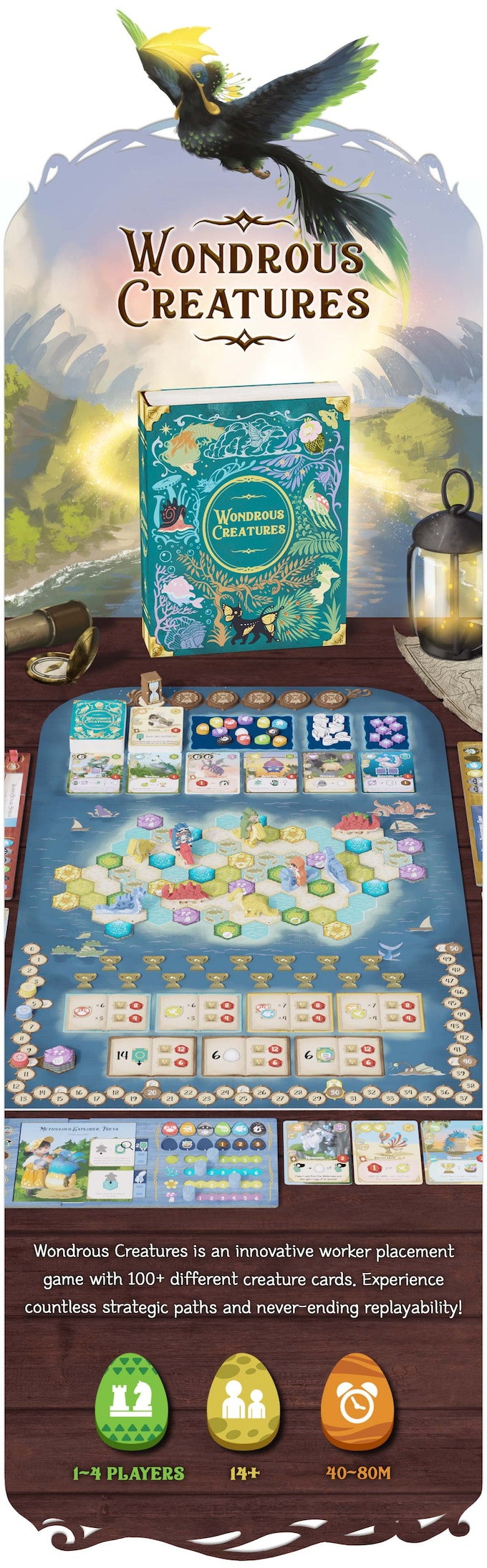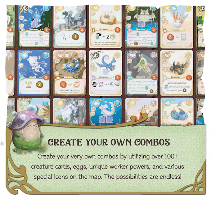 100+ Different Creature Cards: Collect and combine various different creature cards. Every creature holds its own distinctive ability and provides a deep strategic tableau building experience. Each card beautifully illustrated by Sophia Kang, will immerse you into a wonderful world of Wondrous Creatures.