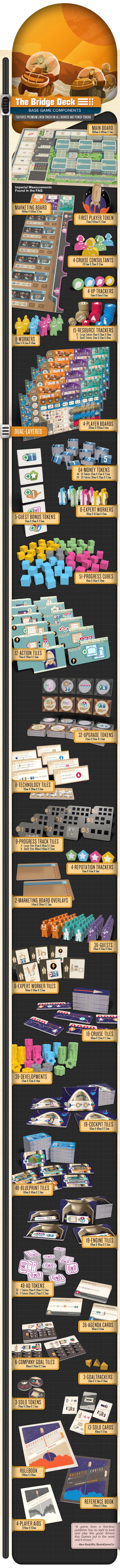 On your turn, you will either place a worker to take two actions in the ever-expanding network, launch a shuttle and send one of your workers to space as a pilot, or recall all your earthbound workers to collect funding bonuses. Actions include acquiring blueprints, constructing shuttles, attracting guests, and building developments–connections between locations that increase action selection throughout the game. You will also be affecting resource markets that ebb and flow with the actions of all the players.