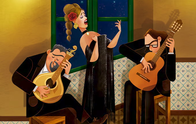In Portugal, some restaurants serve traditional Portuguese food along with performances of Fado - an iconic world-renowned traditional Portuguese music - delivering customers a profoundly expressive performance.