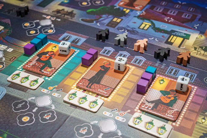In the game House of Fado, players have to manage their restaurant, attract customers, and contract and promote fadistas and musicians, thus gaining prestige for their fado house. Managers will move their staff members to different places to perform some actions, using the same bump action as in The Gallerist.