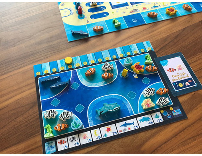 If you've circled the board, you wait for other players to finish, then start a new round, with players moving out in the order that they arrived. After the game ends, players score points for the milestones achieved, funds remaining, order in which they finished, and the sets of creatures they've collected in each tank.