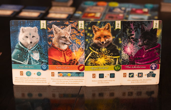Each round you begin with a set of numbered tokens that represent your spell strengths. These tokens are used to cast spells and bid on a grid of items (and special actions) on the forest floor. Once you cast a spell, your rival mystics will have an opportunity to cast a more powerful spell onto an adjacent item, hoping to compel it towards them and prevent you from collecting what you need! As the forest is explored, different conditions of magical control will restrict pathways, leading to strategic situations in which players can "corner cast" and secure multiple items with less powerful spells. If your spell casting comes up short, you can always make an offering to the forest sprites, magical mice that have their own cache of treasures they may share with you, giving you further options to expand your collection.