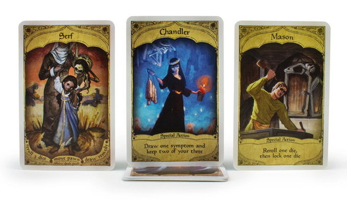 You are racing down the streets, desperate to escape into the safety of the countryside. If your cart is the first out of town you and your cart-mates win! Or do you? Some villagers on your cart may secretly already have the plague. If you leave town with a plagued villager on your cart, you will catch the plague and lose! What will you do to make sure that doesn’t happen? And who will you trust (or betray) along the way?