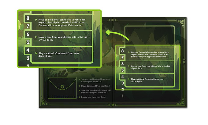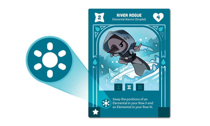 Faction Actions are unique and can be found listed on your Sage Board. Each time you defeat an Elemental in your opponent’s formation, you’ll increase your level on your Sage Board by 1. As your level rises, you’ll unlock up to 3 faction actions. Each faction action costs 1 AP to perform, and you may only perform 1 faction action per turn.