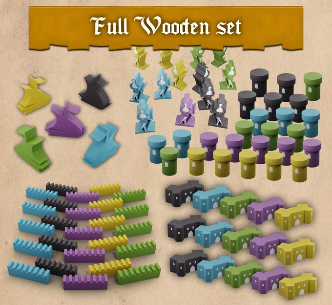 Please not that these wooden pieces will be upgraded with the Stretch goal designs, when reached.