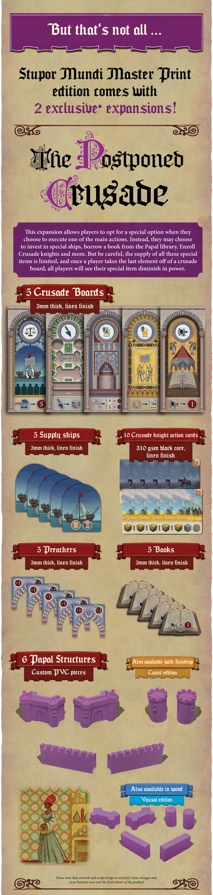 This Gamefound-exclusive promo bundle contains two small expansions for Stupor Mundi: