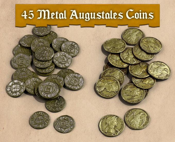Upgrade your game of Stupor Mundi with this stunning set of high-quality metal coins! You can also use these for other board games. The sets includes: