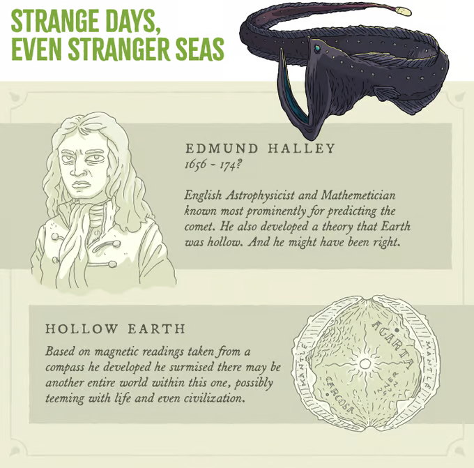 What did Halley do on his expedition to The North? What did he set in motion? What if Earth IS hollow and the denizens that dwell therein are eager to claw their way out? What if this is the — You know what? Not your problem. Just focus on fishing.