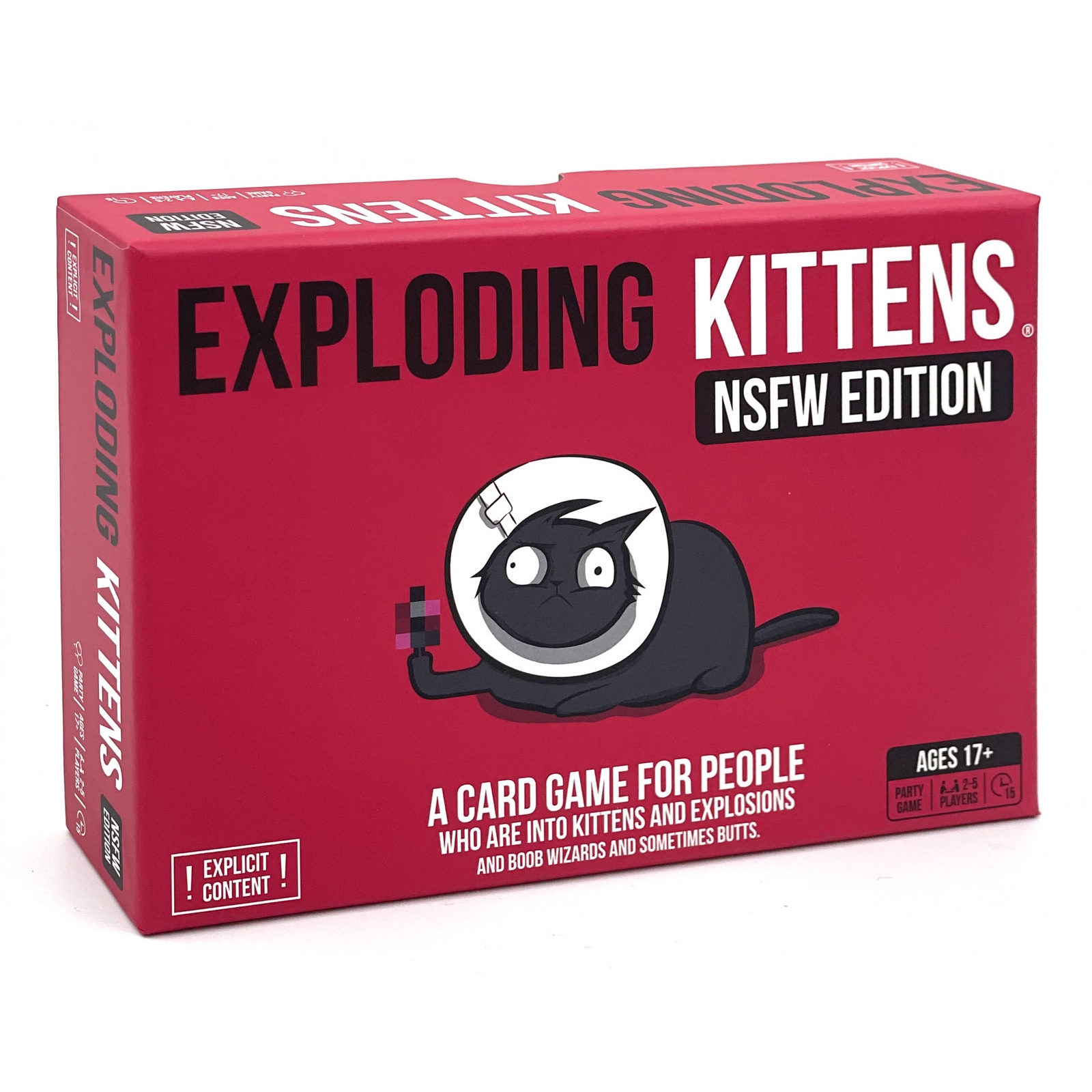 Exploding Kittens: NSFW Edition is a highly-strategic, kitty powered version of Russian Roulette with art much too horrible/incredible to include in a kid-friendly version. Players draw cards until somebody draws an Exploding Kitten, at which point they explode and are out of the game. To avoid exploding, they can defuse the kitten with a crate or via porkback, OR use powerful action cards to move or avoid the Exploding Kitten. Betray your friends. Try not to explode. The last player left alive wins.