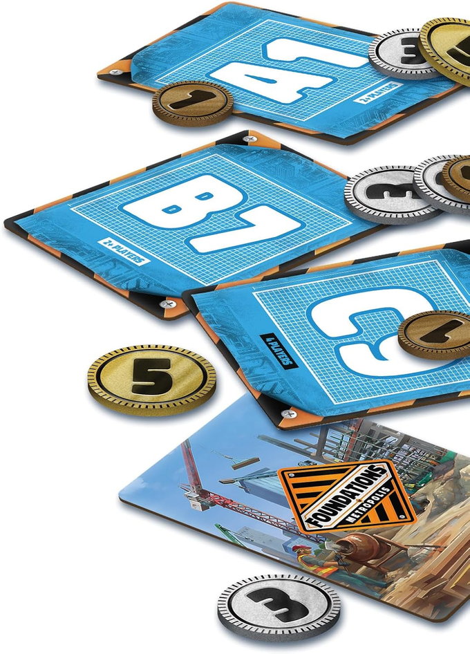 In Foundations of Metropolis, players will compete over three rounds to be the greatest architect in the city by purchasing deeds to empty lots and constructing new buildings on them.More complex buildings require more lots, but will bring you even greater prestige. The player with the most prestige will be appointed Grand Architect!